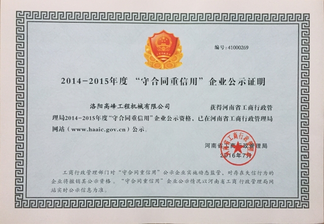 2014-2015守合同重信用企業